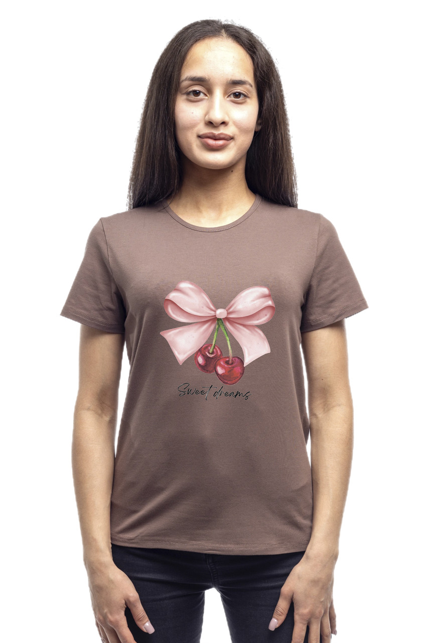 Футболка жіноча однотонна бавовняна Bono принт Вишні прямого крою (різні кольори)