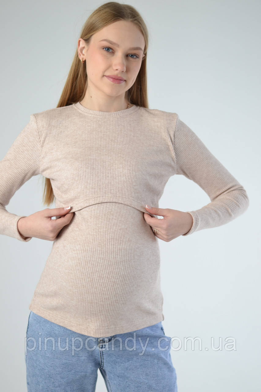 Лонгслів для вагітних і годуючих мам у мʼякий рубчик з вовною (розміри: XS-XL) таш світлий бежевийВ наявності